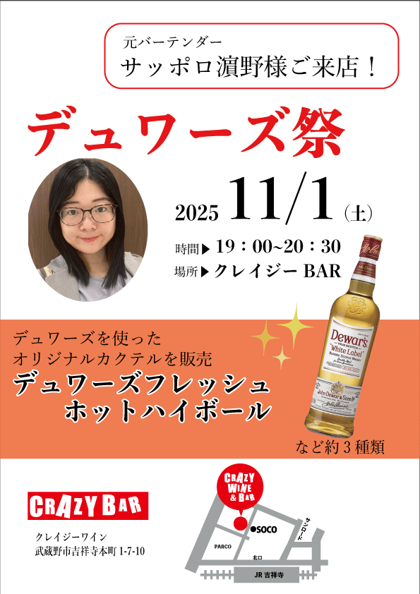 場所:吉祥寺本町1-2-3 「クレイジーBAR」TEL0422-27-5273