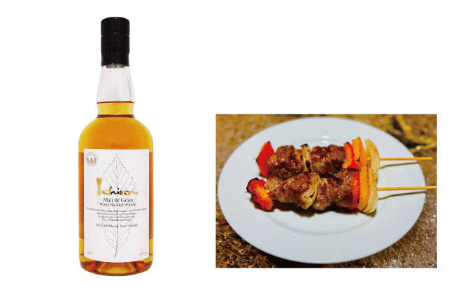 ウイスキー 牛肉と野菜のスパイシー串焼 630円